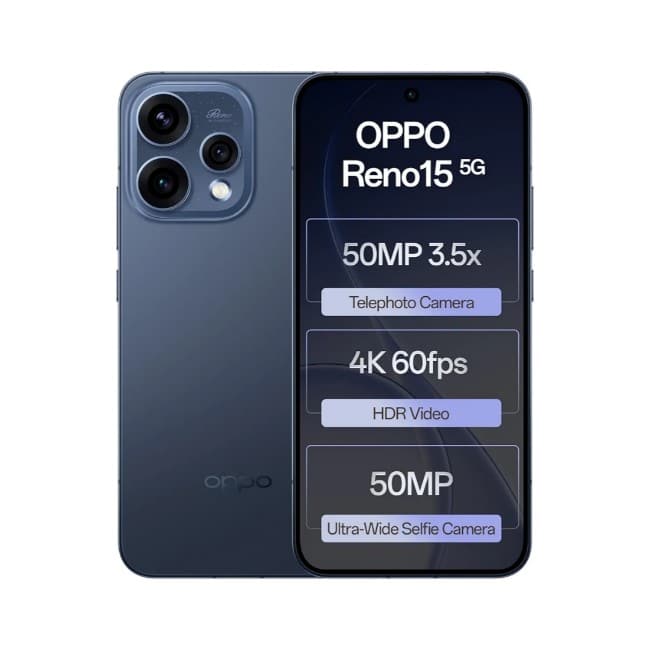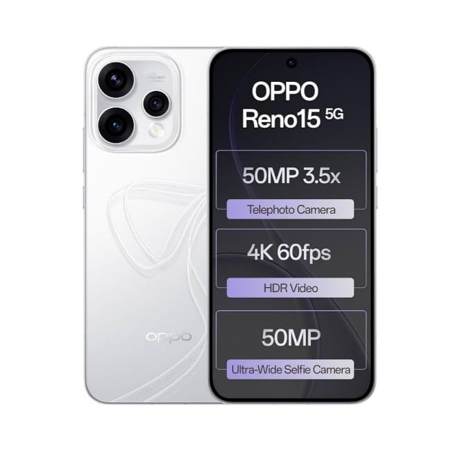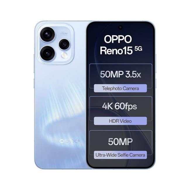 The Oppo Reno15 is a premium 5G smartphone featuring a stunning 120Hz AMOLED display, powerful Snapdragon 7 Gen 4 processor, advanced 50MP triple camera system with telephoto zoom, and a large 6500mAh battery with 80W fast charging.