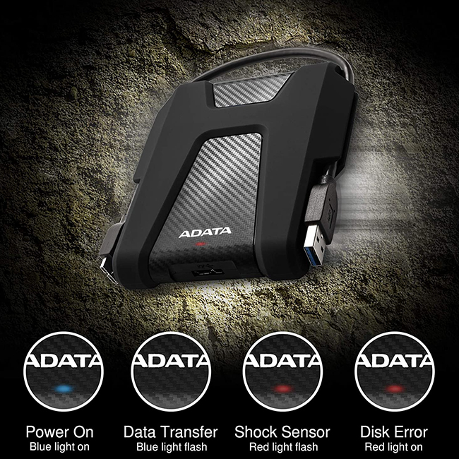 ADATA HD680 shock-resistant USB 3.1 portable HDD provides enhanced protection from the unexpected. Conventional external HDD which limited drop protection can easily suffer permanent data lost due to physical damages to the discs caused by accidental drop onto hard surfaces. ADATA HD680 shock-resistant USB 3.1 portable HDD revolutionizes portable storage design from the core up by mounting the HDD onto a specially-designed shock-dampening suspension system tightly secured inside a dust and water-resisting composite hard plastic casing that is also highly scratch and fingerprints-resistant.
