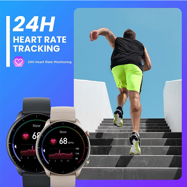 Health is on Your Wrist: The Amazfit GTR 2 can provide 24-hour high-precision heart rate monitoring and real-time warnings for potential risks of heart trouble. Also, this watch has added the blood-oxygen saturation measurement, sleep quality & stress level monitoring function to keep you on top of your health. Built-in PAI Health Assessment System to summarize your physical state in a single, intuitive score.