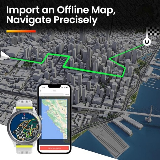 Precise Route Navigation and Offline Maps: With this sport watch, you’ll always know where to run. Download a color map of the area you plan to run from the Zepp App and import it to the watch, to enjoy a detailed understanding of your surroundings. Pair the map with a matching imported route file and navigate with incredible precision as you run.