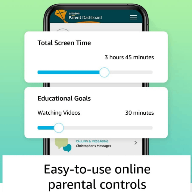 Easy-to-use Parent Dashboard allows you to filter content based on child’s age, set educational goals and time limits, and grant access to additional content from Netflix, Disney+, and Zoom.