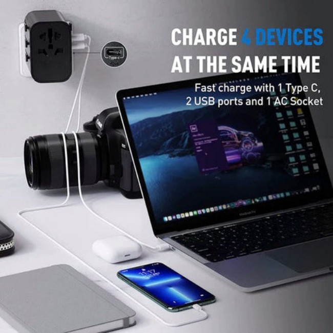 FAST CHARGE – Charge in far less time with 1 Type C 3.0A, 2 USB-A ports, and 1 AC socket. Perfect travel accessories for you and your family. Works flawlessly for USA, EU, UK, and AUS electrical systems used on every continent. Never again see an outlet your adapter can’t handle. Essential for global travel, holidays and vacations, and visits with family. Does not convert voltage.