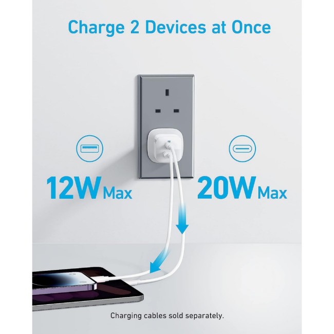 Connect one device to the USB-C port to get a 20W charge, and connect another device to the USB-A port to charge at up to 12W.