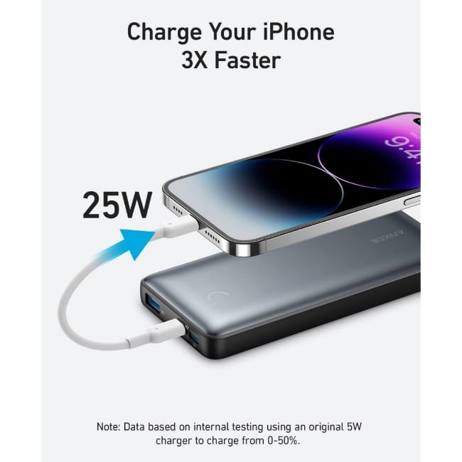 Elevate your iPhone experience with high-speed 25W output, fueling your battery up to 3 times faster than regular power banks.