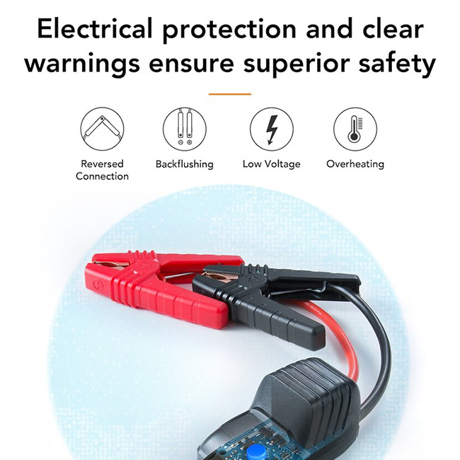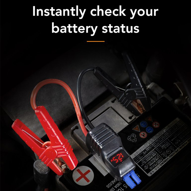 Clamp to your battery without plugging in to the jumpstarter to get an instant readout of your car’s battery status.