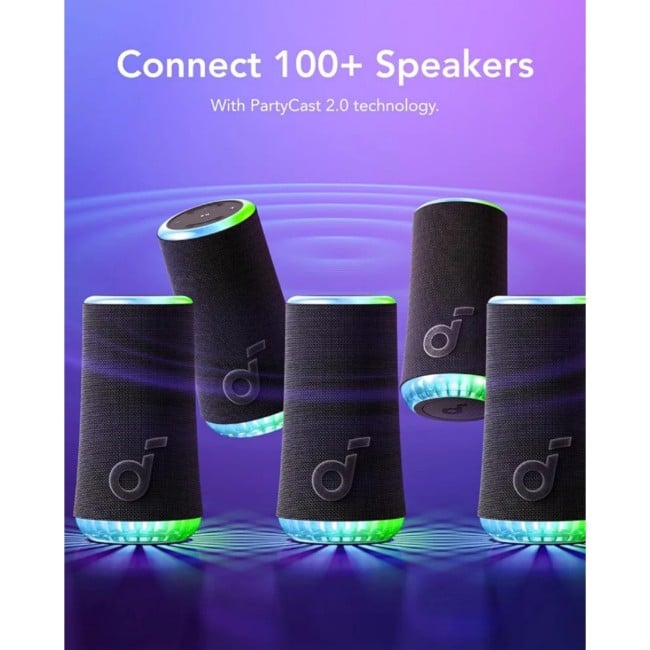 PartyCast 2.0: Amplify your listening experience by linking up to 100+ PartyCast-compatible speakers together.