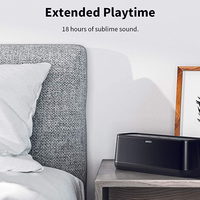 Anker’s leading power management technology and an 8000 mAh Li-ion battery power up to 18 hours of continuous music. The built-in USB port with PowerIQ fast charging allows you to play music and charge your device simultaneously.