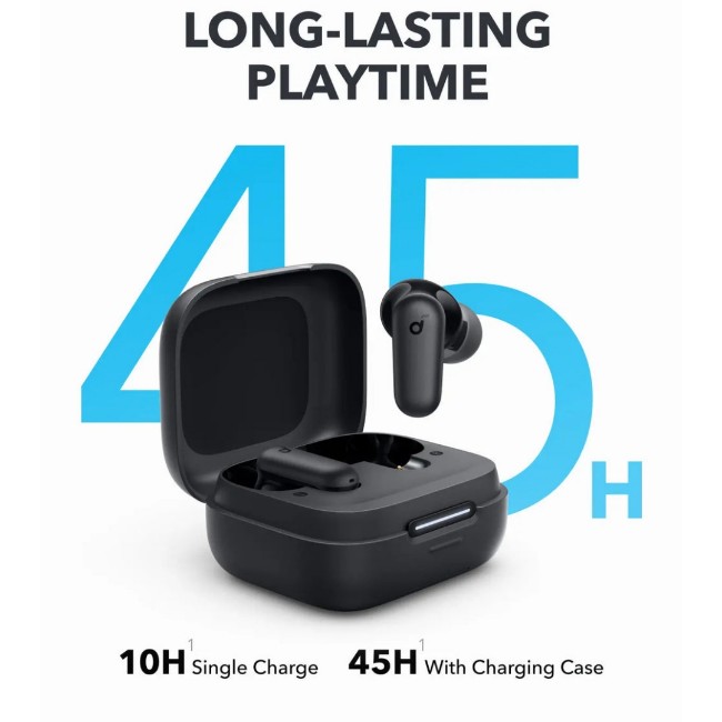 Featuring 12mm dynamic drivers with BassUp™ technology, these earbuds deliver rich, powerful sound. Enjoy 45 hours of total playtime (10 hours earbuds + 35 hours case) with ANC off, or up to 35 hours with ANC on.