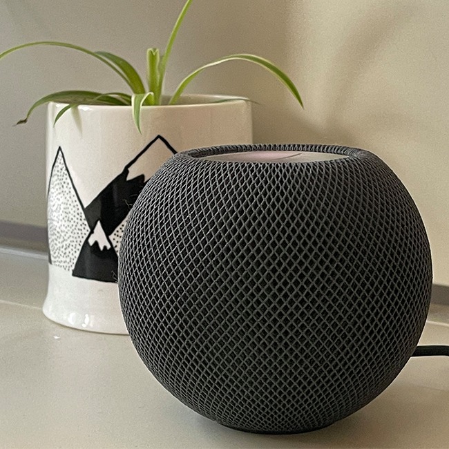 HomePod mini is designed to fit anywhere in the house. Its elegant shape is wrapped in a perfectly seamless mesh fabric that?s virtually transparent to the sound passing through it. A backlit touch surface on the top provides quick control.