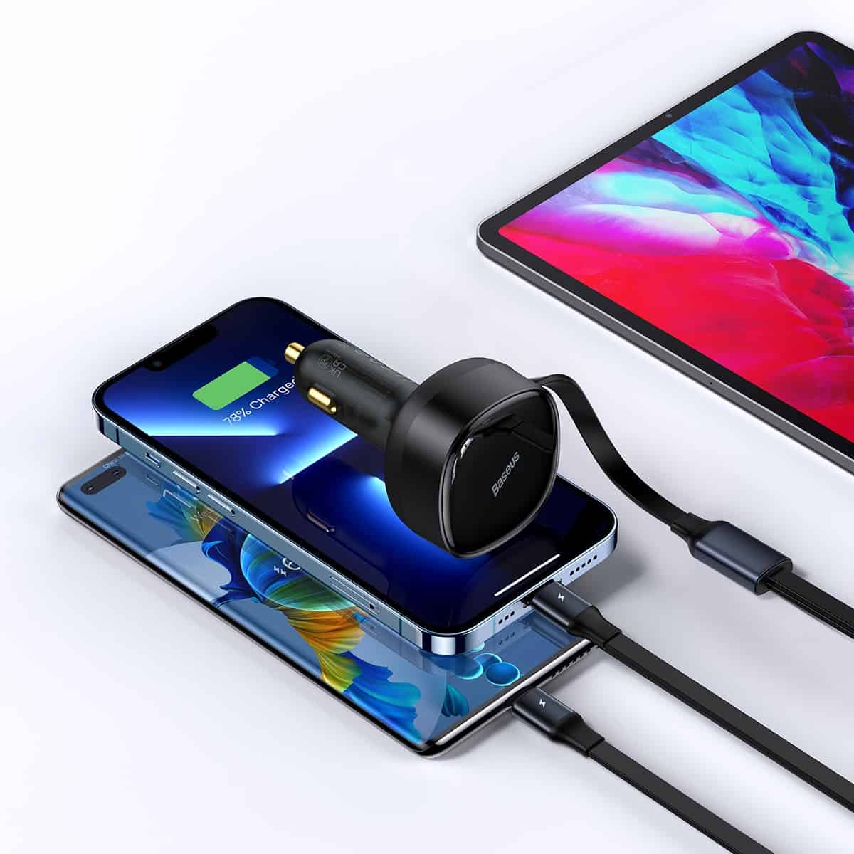 Baseus Enjoyment Retractable 30W 2-in-1 Car Charger with Type-C and Lightning Cable