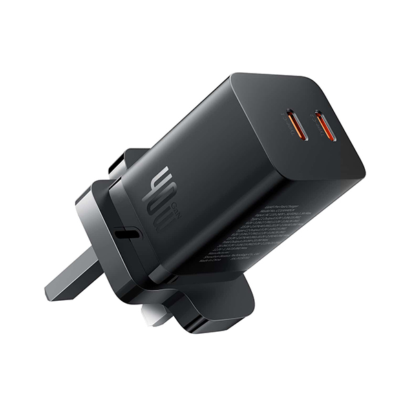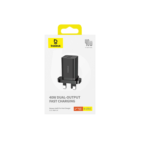 - BASEUS GaN5 Pro Fast Charger Type-C + Type-C Dual Output 40W UK Plug Charging Adapter – Black