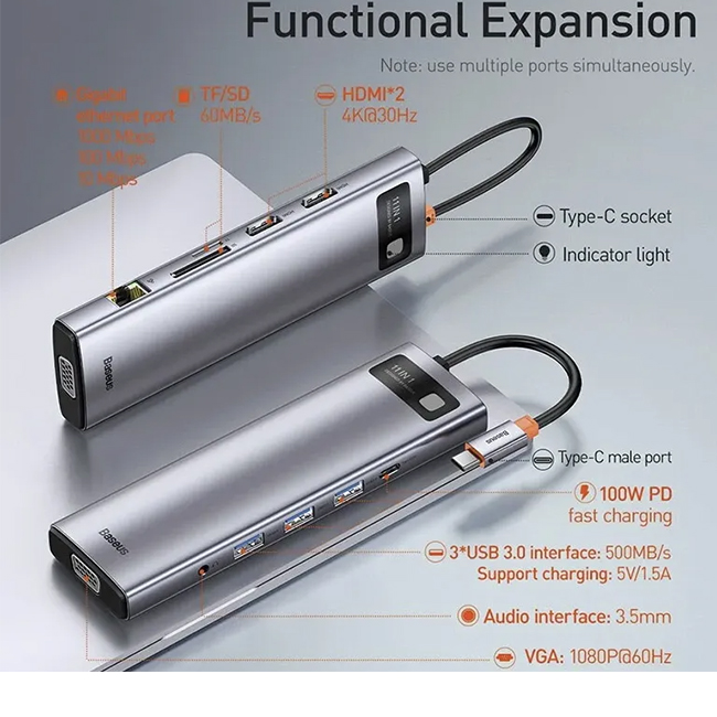 Baseus Metal Gleam Series 11-in-1 Multifunctional Type-C Hub