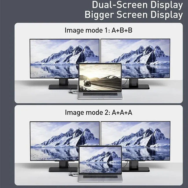 Compatible with Apple OS/Windows systems and able to expand to three large screens simultaneously, extend mode/mirror mode display at any time, displaying different content in multi-screen mode.
