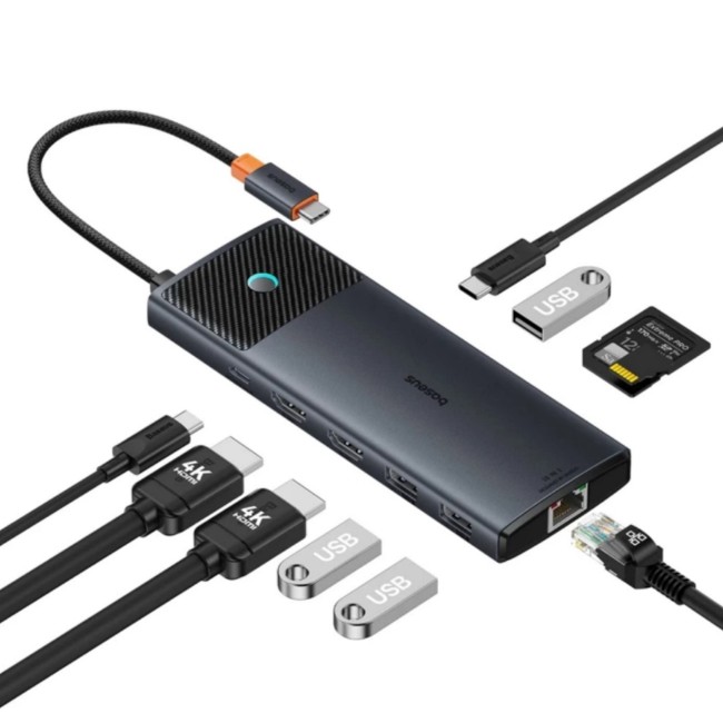 Baseus Metal Gleam Series 2 10-in-1 HDMI*2 + USB3.0*3 + PD*2 + RJ45*1+SD/TF*1 USB-C Hub Adapter