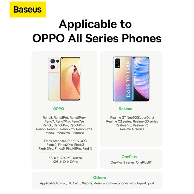 Use with the original charger, fully Charges for Reno7 Pro in 30min.