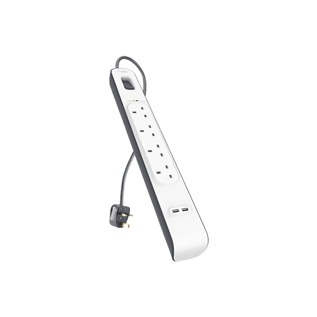 Keep your electronic devices protected from dangerous power surges and spikes with the Belkin 4-Outlet Surge Protection Strip with two USB ports. Simply plug the surge protection strip into any AC wall outlet and connect up to four AC and two USB devices to keep them safe from power surges, lightning strikes, and AC contamination. Ideal for laptops, desktops, printers, routers, and other home-office devices, the Belkin Surge Protection Strip is made with high-quality circuitry and premium absorptive materials to protect your electronics and data.