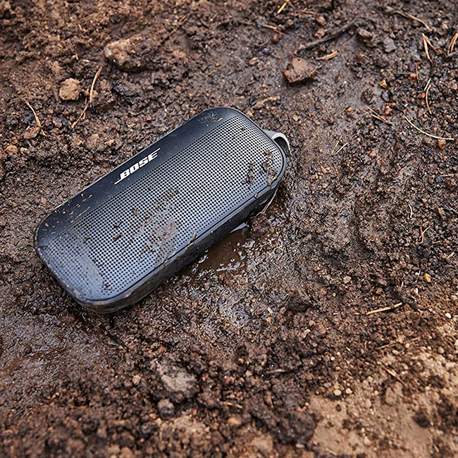 With its powder-coated steel grille and silicone exterior, the SoundLink Flex Bluetooth speaker was purpose-built with durable materials, making it adventure-ready. Its tough exterior can withstand almost any mishap, like a fall to the floor. The grille’s thick coat of powder gives the speaker a rugged texture that can withstand whatever your day throws at it. The powder coat won’t peel or flake, and it’s resistant to rust corrosion and UV light. Yet, for all that “tough talk,” the unique ergonomic design of this wireless speaker is easy to hold and feels good in your hand wherever you grab it.