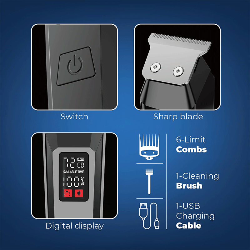 The USB Type-C fast charging ensures quick power-up, while the LED battery indicator keeps you informed at a glance. Built with precision-engineered blades and a skin-friendly, ergonomic body, it’s perfect for clean, safe grooming every time.
