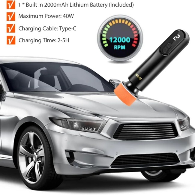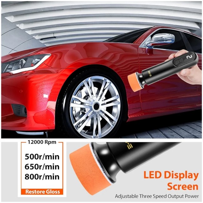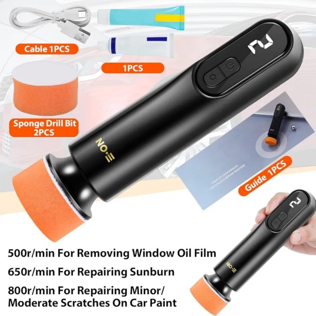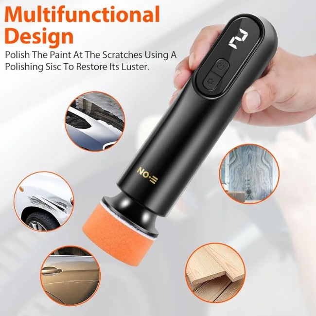 With 12000rpm speed all copper motor, uses abrasive with polishing disc to polish the paint at the scratches, repair all kinds of light and medium paint scratches without exposing the primer, and restore the shine.