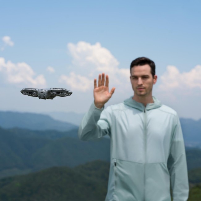 Easily adjust Neo 2’s direction and proximity with one or both hands. Point your palm toward the drone to guide it up, down, or side to side, or use both palms for precise control over proximity. No remote controller is needed for camera angle adjustment.