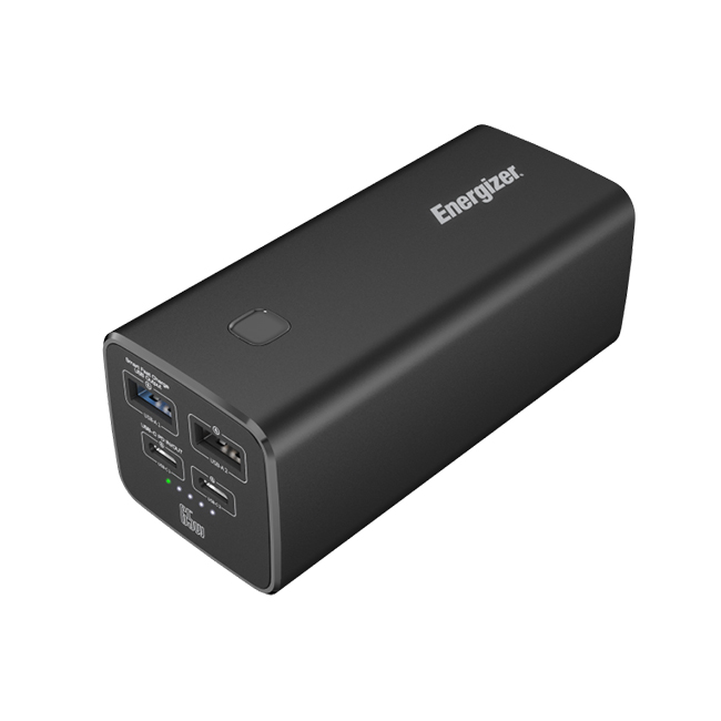 Energizer XP20004PD is an ultimate fast charge power bank with 65W Max. USB-C PD output designed for Macbook and other USB-C laptops. Featuring four output ports includes 2 USB-A and 2 USB-C, XP20004PD charges up to 4 devices simultaneously, perfect for sharing with friends and multiple devices. XP20004PD is equipped with multiple fast charge protocols and low current charging mode, that supports up to 65W fast charge to the new iPhones, Nintendo Switch, Macbook, and other USB-C laptops; 22.5W Smart USB-A Fast Charge supports up to 22.5W fast charge to compatible Android devices; low current charging mode is designed for small battery devices such as Bluetooth headsets, TWS, smart watches and more. Built with 20,000mAh extra high capacity, fast charge technologies, and PowerSafe management, XP20004PD gives you extensive battery life for all your charging needs and provides the most safest and efficient charge at anytime, anywhere!