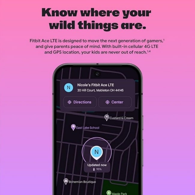 KNOW WHERE YOUR WILD THINGS ARE – The Fitbit Ace LTE is the first-of-its-kind kids smartwatch and fitness tracker designed to move the next generation of gamers; with built-in cellular 4G LTE and GPS location, they’re never out of reach.