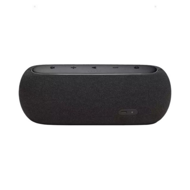The Harman Kardon Luna’s sleek, minimalist silhouette enhances any setting. The elegant ergonomic design, fabric-encased build, and anodized aluminum top panel look and feel great anywhere.