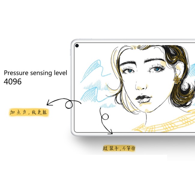 Huawei M Pencil looks and feels like a real pencil. With pixel-level precision and almost imperceptible lag, you can naturally write, scribble and doodle. Its high sensitivity to tilt and pressure also allow you to create shading and varying line width for your artistic expression.