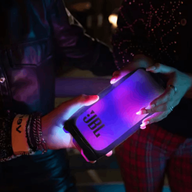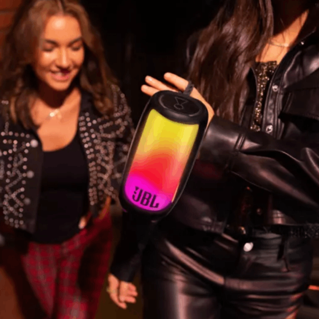 Illuminate the moment with the eye-catching, personalizable, 360-degree light show of the JBL Pulse 5 in sync with the beat of your music as its upfiring driver unleashes deep bass and bold JBL Original Pro Sound in all directions. The sturdy strap lets you take the portable dustproof and waterproof Bluetooth speaker from your backyard to the beach and beyond. Dance until dawn with 12 hours of play time or use PartyBoost to pair multiple compatible speakers whenever you want to increase the sound—and enhance the experience.