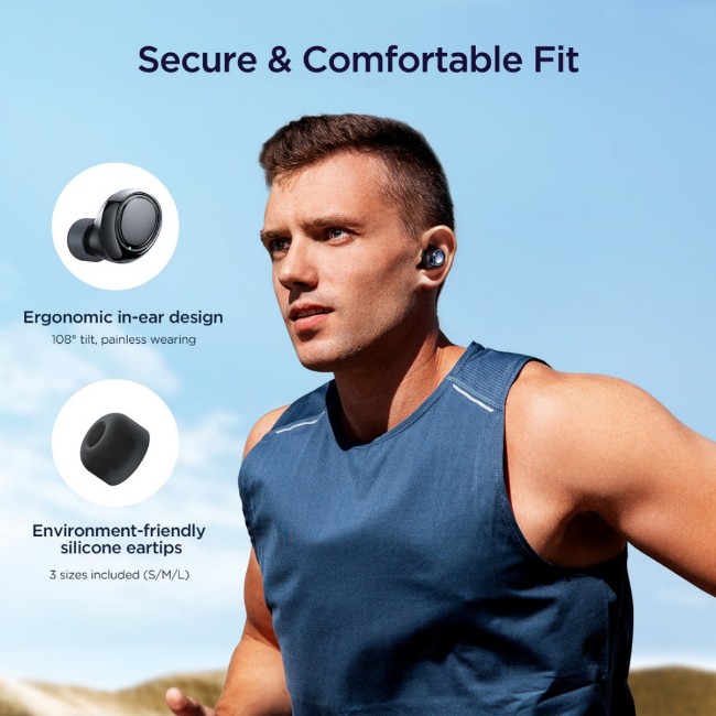 Single earbud play time reaches up to 48h with a charging case.