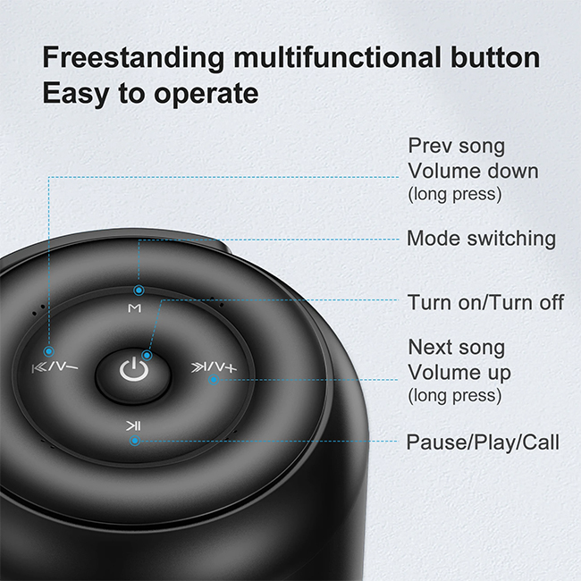 Independent multifunctional button, easy to operate it. (Multifunction button helps to operate it easily, one click to start/stop music, or pick up and hang up the phone)