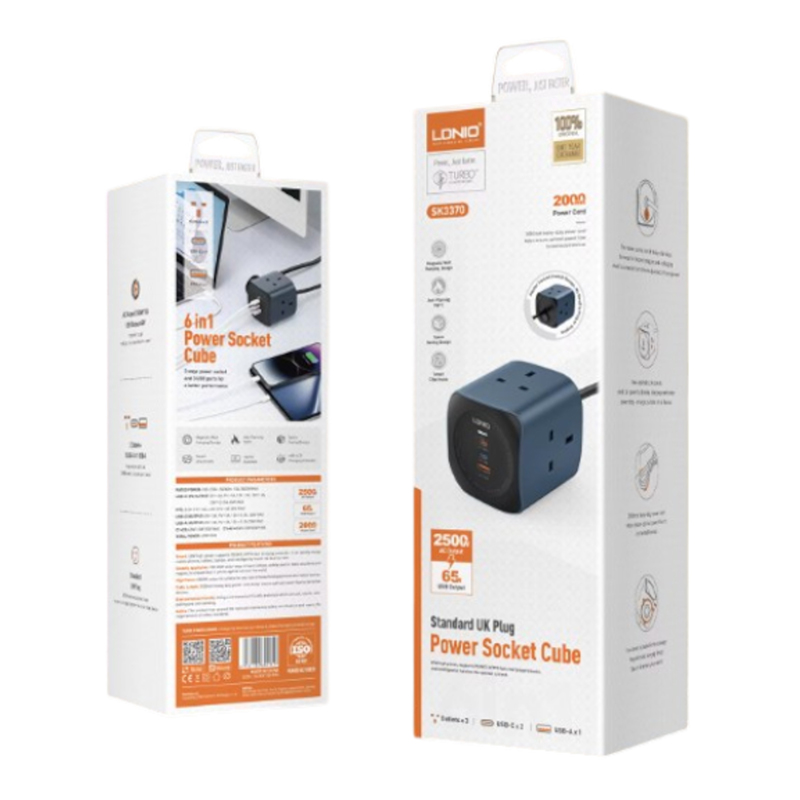 The LDNIO SC3319 6 in 1 Power Socket Cube is the ultimate charging companion for your home or office. Designed with 3 AC outlets and 3 USB ports, this compact cube lets you power multiple devices at once — from laptops and TVs to smartphones and tablets.
