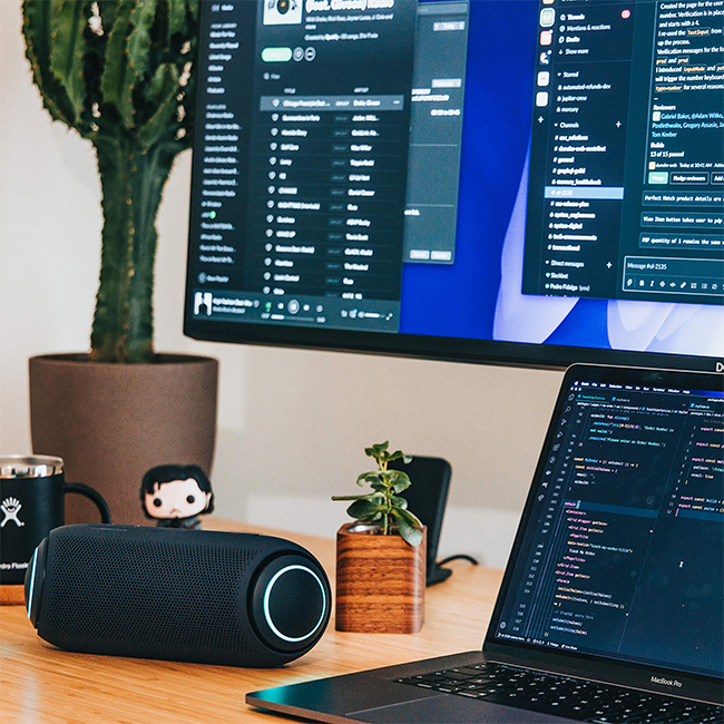 Bring epic sound wherever you go. The small, sleek body of the LG XBOOM Go packs a huge punch with 30 watts of power and stereophonic sound. With Meridian audio technology and dual passive radiators, you get one powerful speaker that couldn’t be easier to pack with you.