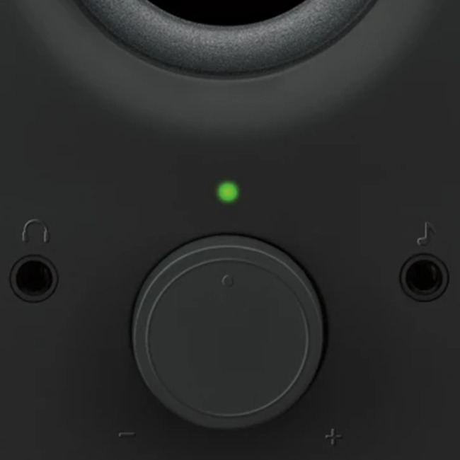 - Simply plug your headphones into the easily accessible jack located on the front of the right speaker