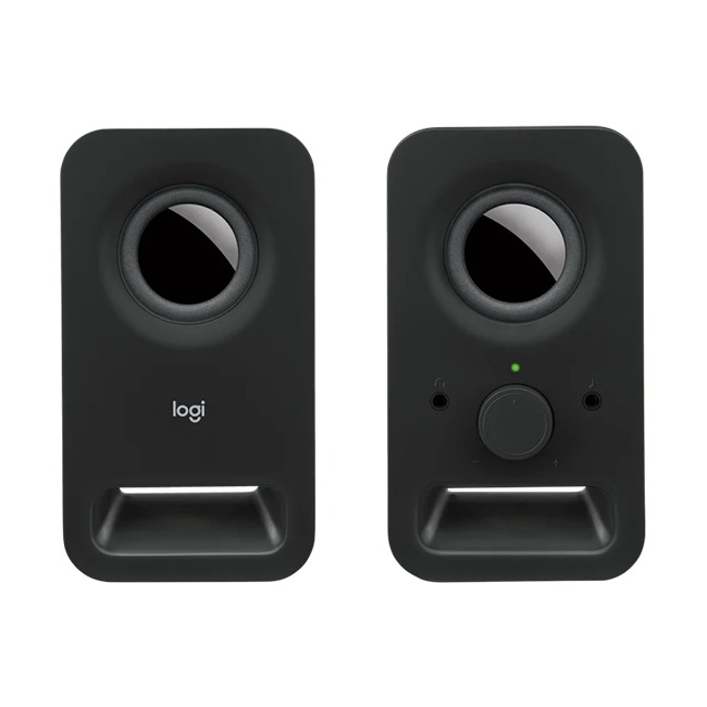 These stereo speakers provide clear sound and the compact design is great for small spaces. Easily access all controls, including the headphone jack, on the right speaker.