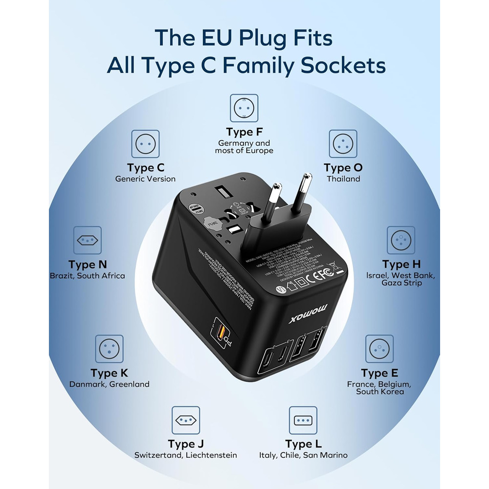 Plug in and power up anywhere with the 1-World Universal 5-Port Travel GaN Charger 70W. Usable in over 180 countries with JP/US, AU, EU, and UK sockets, it charges multiple devices simultaneously, including smartphones, tablets, smartwatches, and gaming handhelds. Featuring GaN technology, intelligent power management, and built-in fuse protection, it delivers fast, safe, and efficient charging in a compact, lightweight design perfect for travel.