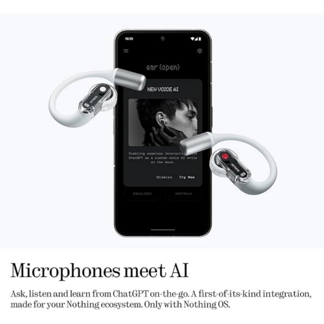 Performance and Smart Integration: The Nothing Ear (open) features a unique integration with ChatGPT for voice control across your Nothing ecosystem, allowing you to access information seamlessly via bespoke widgets, Microsoft Swift Pair, and Google Fast Pair, along with AAC and SBC audio support, LED charging indicators, and pinch controls