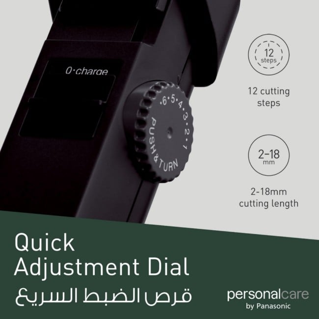 Quick adjust dial for easy length setting Turn dial to easily adjust comb up and down into 12 settings from 2-18 mm. No need for multiple comb attachments.