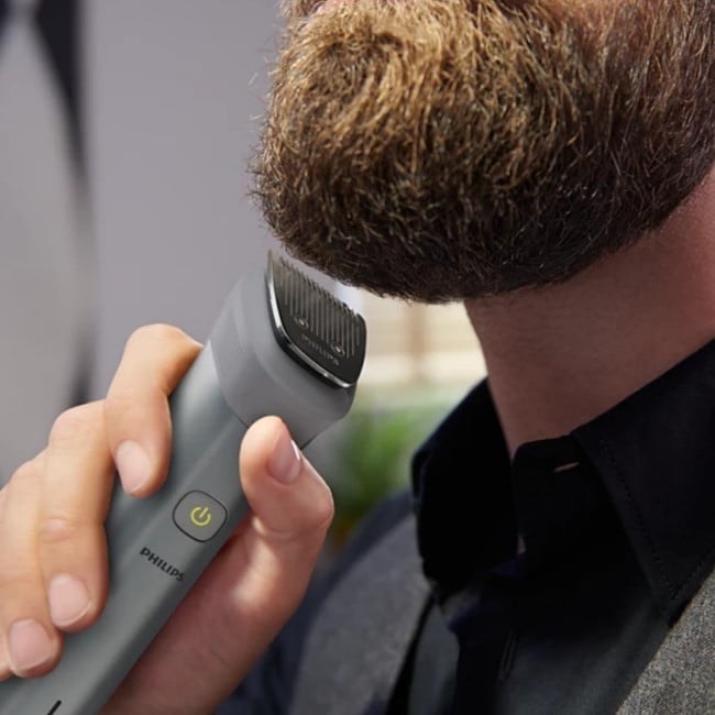 The trimmer and its multi-comb set offer 11 length settings from 0.5 to 16 mm in 1 mm precision steps for shorter and longer beard styles. Create sharp edges and clean up cheeks, chin and neck with the metal trimmer to finish your look.