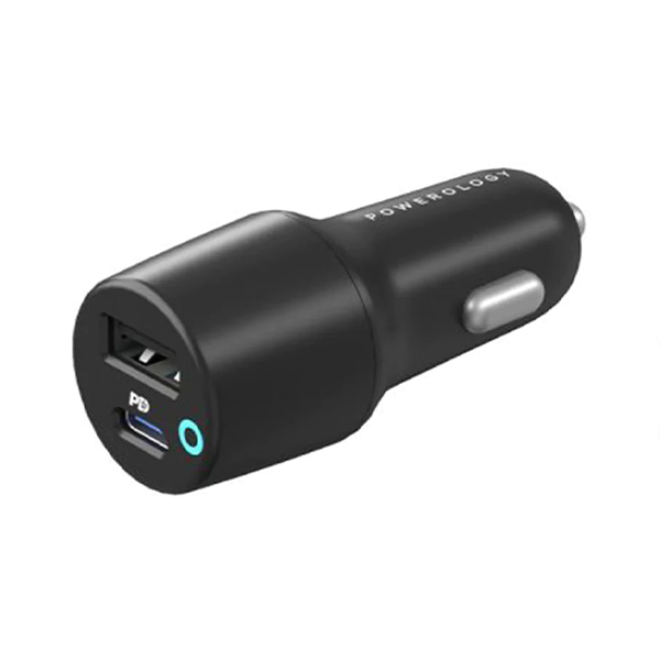 Powerology USB car charger has two different ports. One port is USB-A and it delivers 12W output. The other port is USB-C with 20W power delivery. With a total output of 45W, this product can save time for you and charge your devices fast. Depending on the device, it can charge from 0% to 60% in 35 minutes.