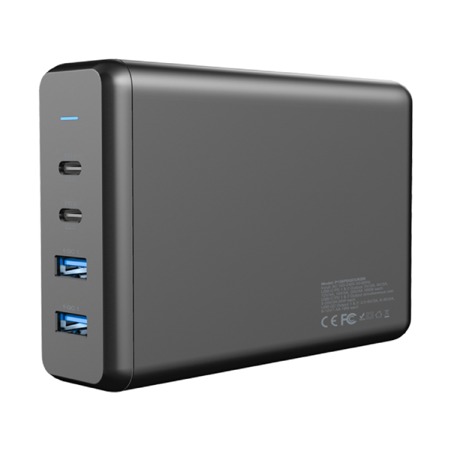Powerology 4-Port QuickUSB-C PD outputs able to charge all versions of MacBook Pro and MacBook Air, all iPad series, as well as an array of Lenovo, Microsoft Surface and other leading laptop models.