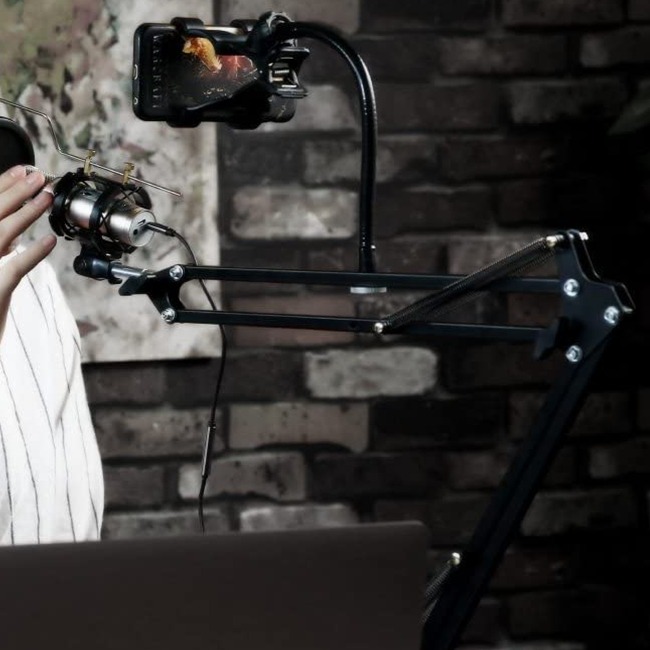 The adjustable Black Scissor Arm Stand is made of high quality steel frame, plastic Mic Clip (INCLUDED), sturdy and durable. Folding type, convenient to carry. The adjustable arms allow you to carry it with you easily and adjust the suitable angle and height to show your perfect voice. Can be mounted on the announcers’ table