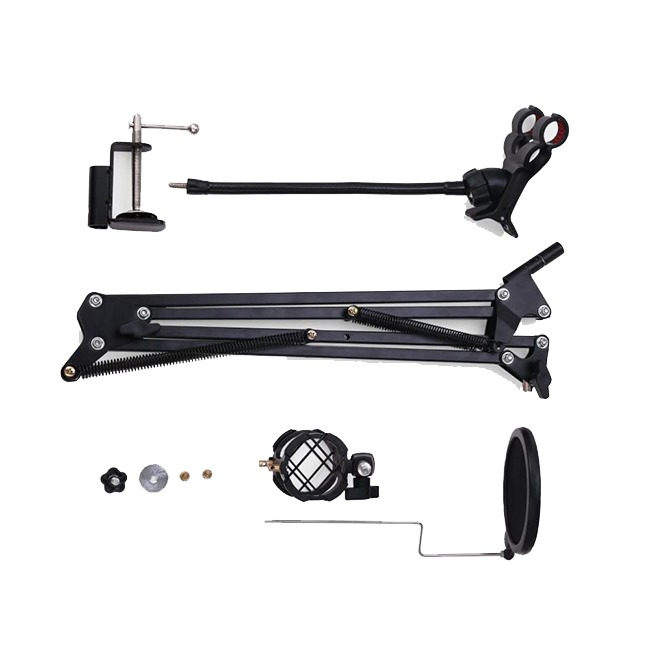 Compact microphone stand designed for heavy duty carry. Suitable for any stores, families, stages, studios, broadcasting and TV stations, etc. Completely flexible, firmly attach the microphone anywhere.