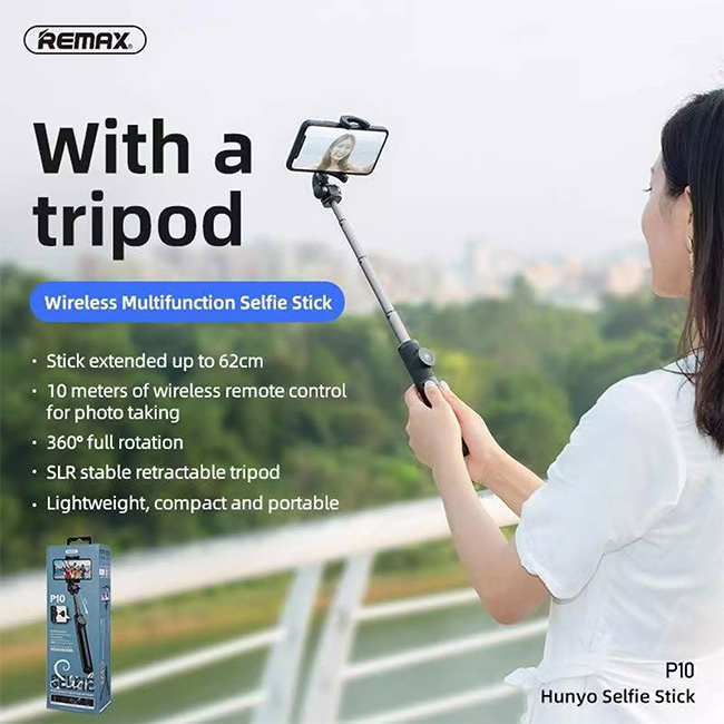 Remax P10 Bluetooth Selfie Stick with Remote Control & Tripod Mode.