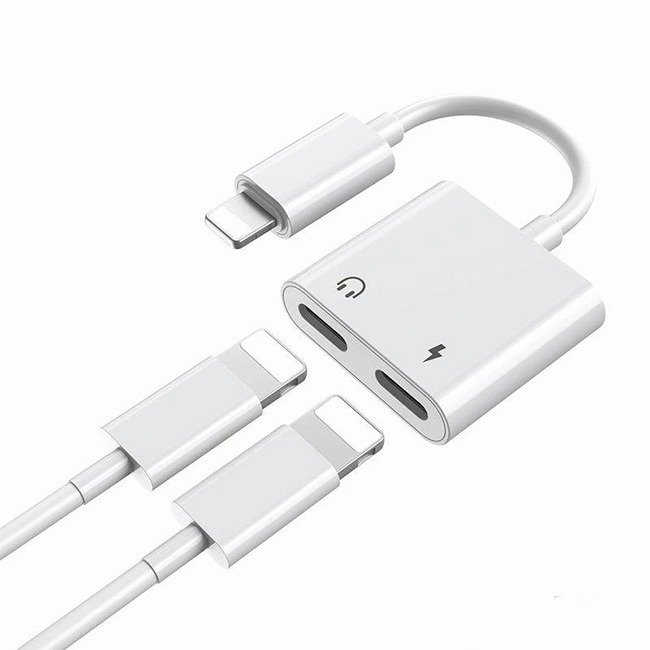 Adapter 1 port Lightning to 2 port Lightning / Lightning Converter and signal from Lightning Port 1 port to Lightning 2 Port Easy to use,? Compact size Support phone charging And listen to music at the same time Used with Lightning headphones Chat support. A call? Supports a maximum charging current of 2.0A. High quality transducer, high quality internal copper wires.