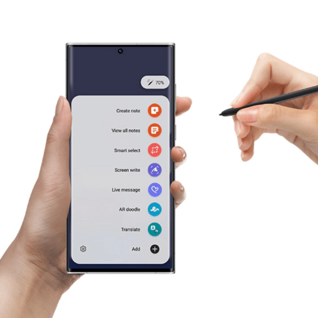 Take advantage of the expansive screen on Galaxy S22 Ultra. S Pen features a slim 0.7mm pen tip with 4,096 pressure levels to write and sketch as naturally and accurately as putting pen to paper.