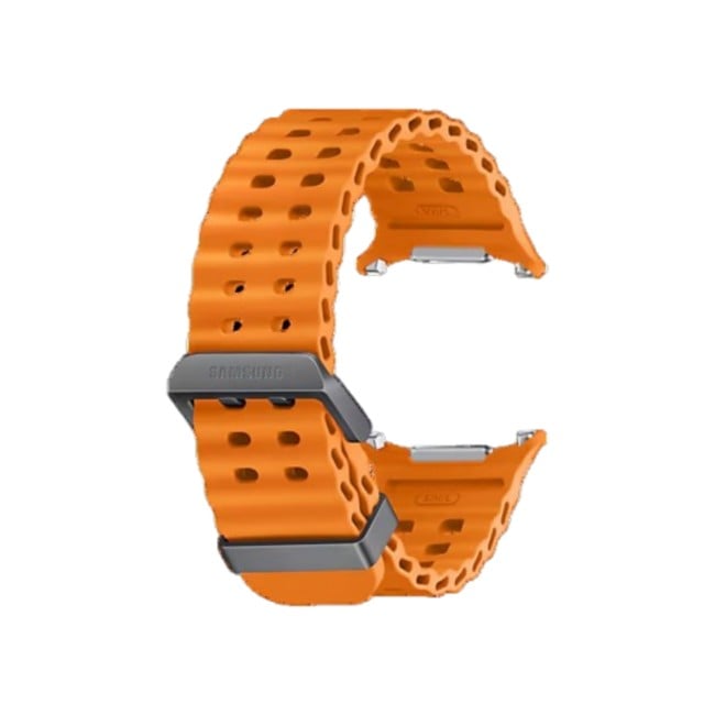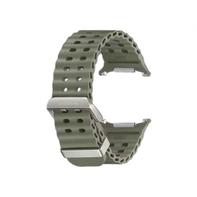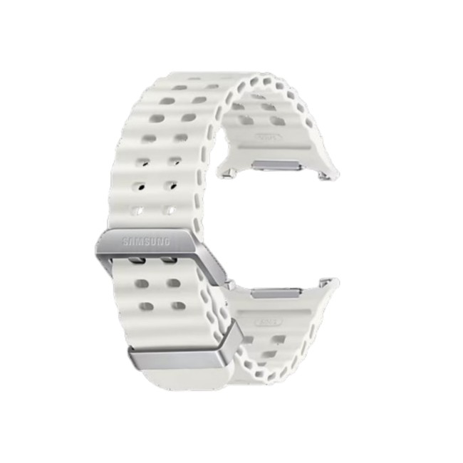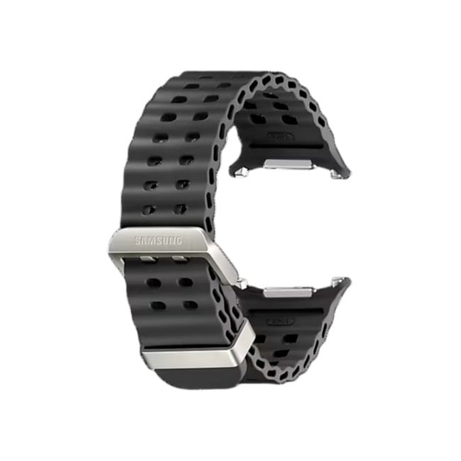 The Galaxy Watch Ultra Marine Band is crafted to meet the performance standards of the new Galaxy Watch Ultra. Designed for water swimming, its titanium buckle is light and durable. With a wide ripple design for easy water drainage and quick sweat drying, you can easily conquer water activities without worries.