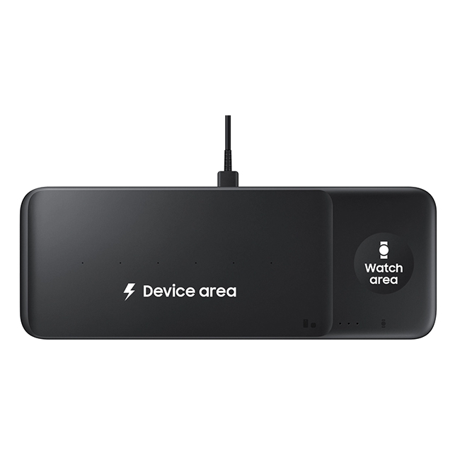 With the dedicated spot for Galaxy watches, you can keep your timepiece powered up to get you through your day. An interior magnet on the right side of the charger guides your watch into place to charge. And on the left you can charge your phone, Galaxy Buds series and more.