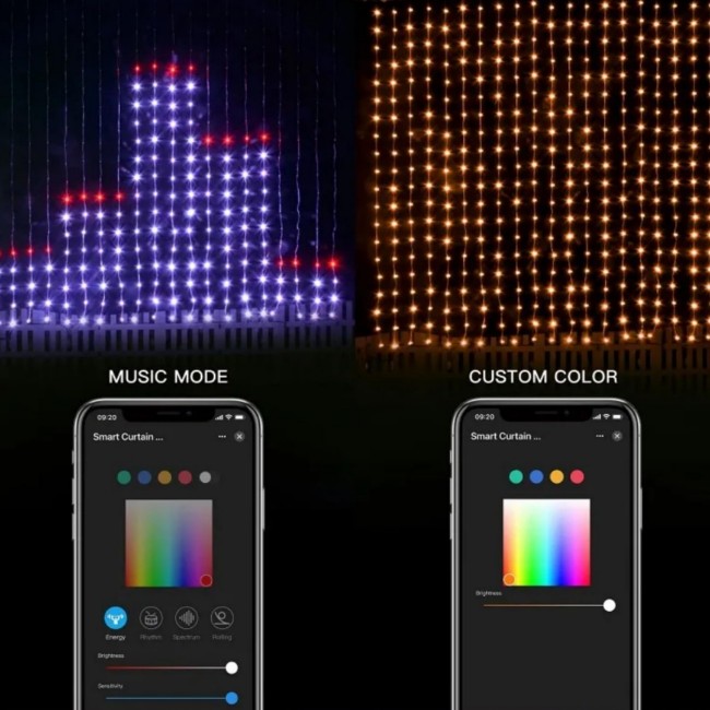 The size of a single curtain light: 6.56×6.56 ft, up to 3 sets of lights of the same specification flashing curtain lights are connected in series, DIY into a larger pattern or text scene, which can be used directly to become a larger scene and the like replace. At the same time, the pattern colour of the lights can flash with the music rhythm of the app, creating a romantic, warm and sweet atmosphere for your festivals, weddings, parties and Christmas gatherings.