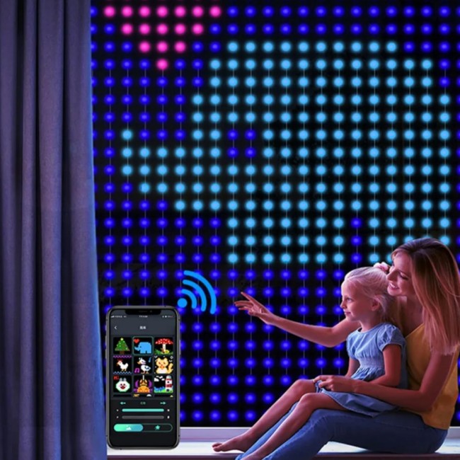 The upgraded version can DIY a variety of patterned curtain lights. Comes with a large number of dynamic pictures/patterns/motion, you can DIY any pattern you like: text, pattern, static, dynamic, flashing (love, Patrick, flag, Halloween), to create the perfect atmosphere for special occasions.